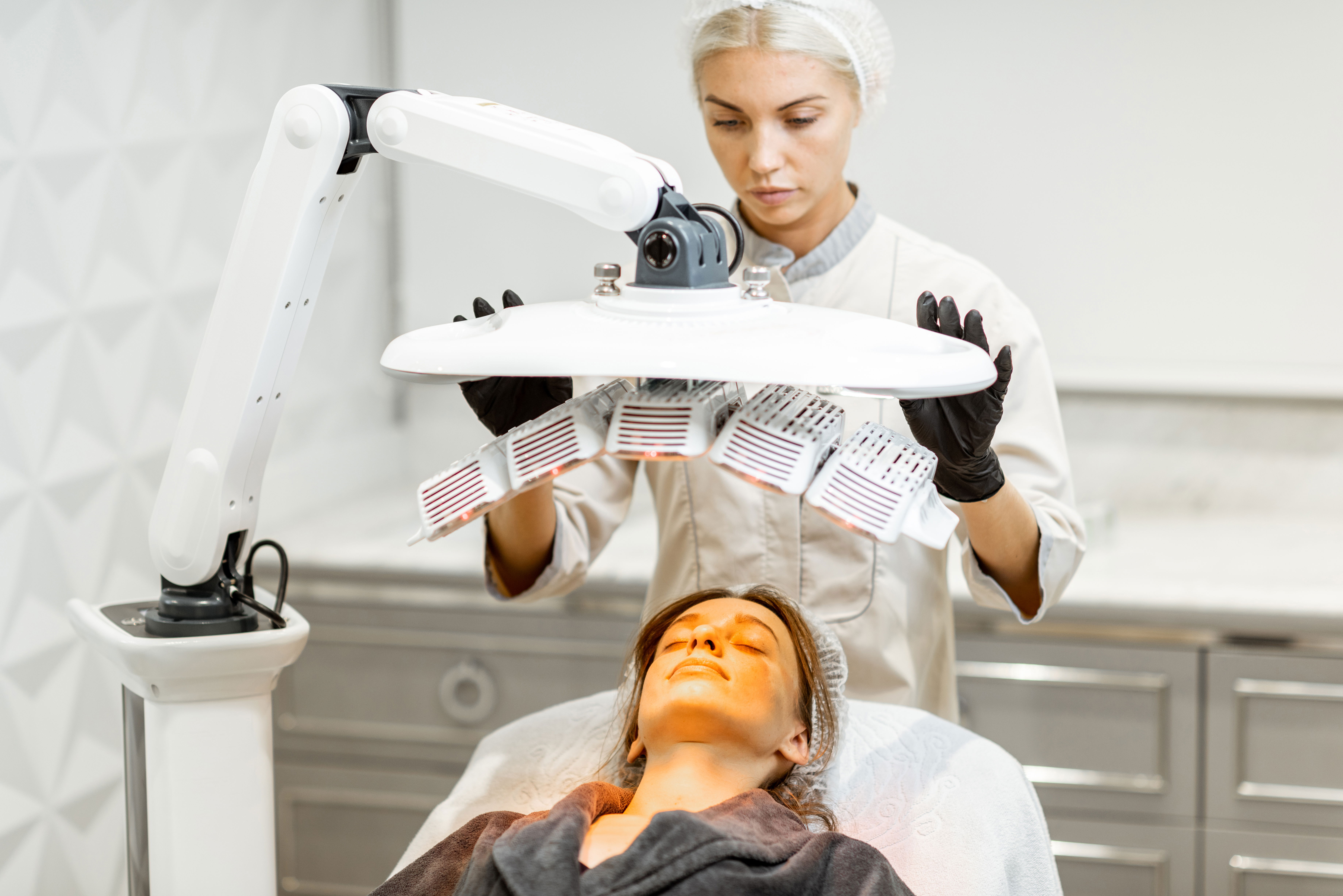 LED 光療如何進行?療程中通常會使用面罩或拱型的儀器,針對臉部、頸部(某些儀器甚至能用在全身)照光。照光可深入皮膚基底加速肌膚癒合並增進肌膚保水度。經臨床實驗證實,結合紅光和藍光的光照療程效果最為顯著;因為不同的光代表不同的波長,不同的波長可針對不同的肌膚問題作修復。重點是光照療程過濾掉環境中的紫外線,所以光照療程讓肌膚修復的同時,並不會增加肌膚的負擔。唯一要特別注意的是進行單一次光照療程後的效果通常無法維持太久,所以最好進行長期定時定量的光照以增進效果。